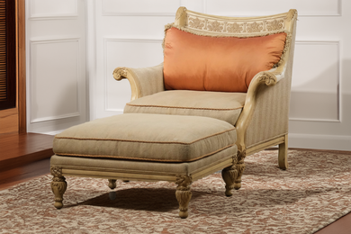 Corinthian Acanthus Carved Arm Chair and Ottoman - Century