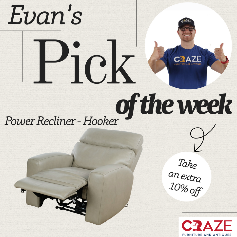 Evan's pick of the week is a Hooker Furniture Mowry Power Recliner – Cream Leather.