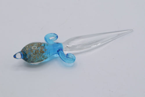 Hand Blown Glass Letter Opener – Blue & Clear with Gold Fleck Design