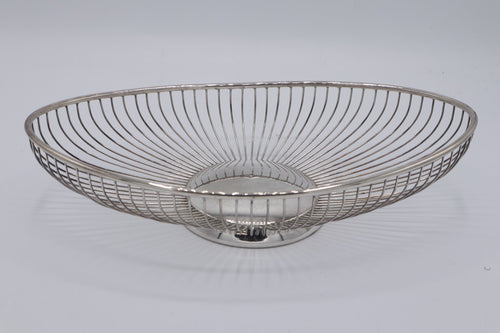 Italian Silver Wire Fruit Basket – Oval Decorative Bowl with Pedestal Base