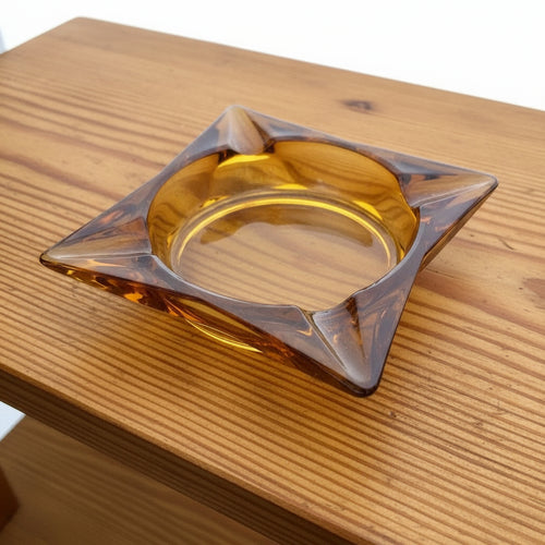 Mid-Century Amber Glass Ashtray β 6" Square Retro Starburst Design, Vintage Barware Decor