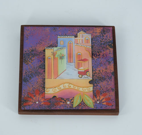 Puerto Rico Ceramic Tile Plaque by Leda – Colorful Street Scene on Wood – Free Shipping