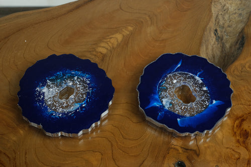 Set of 2 Blue Geode Resin Coasters – Handmade Epoxy Crystal Design