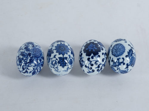 Set of 4 Blue and White Porcelain Decorative Eggs – Floral Pattern, 3.5" x 2.5"