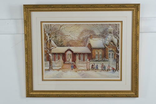 The Museum by Trisha Romance β 1987 Framed Print β 26.5" x 22" Vintage Winter Scene Art