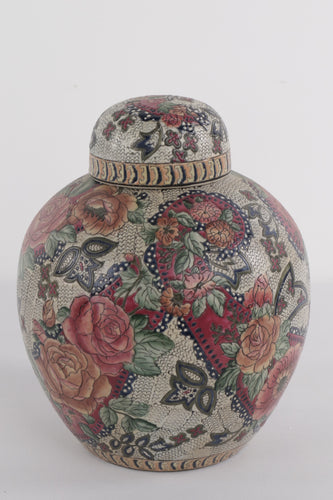 Vintage Chinese Porcelain Ginger Jar with Lid β 10.5" Tall, Hand-Painted Floral Pattern