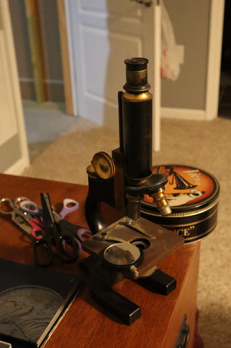 Vintage Brass & Black Cast Iron Microscope β Early 20th Century Laboratory Instrument