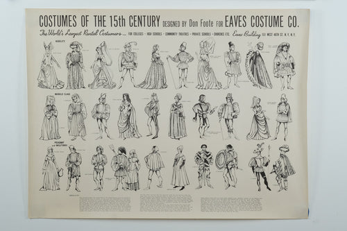 Vintage Costume History Poster β 15th Century Dress by Don Foote for Eaves Costume Co., Medieval & Renaissance Reference Print
