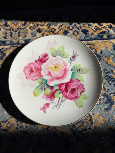 Vintage Hand Painted Japan Porcelain Plate – Pink & Red Roses Floral Art