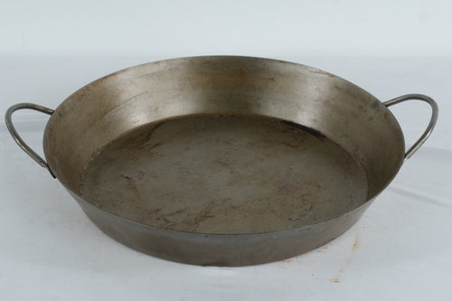 Vintage Heavy-Gauge Metal Double-Handled Pan – Rustic Industrial Cookware or Decorative Kitchen Bowl