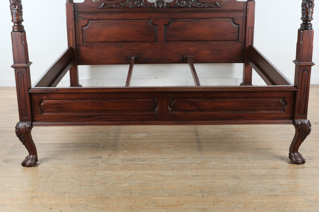 Constructed from solid mahogany with a deep, lustrous finish, this canopy bed reflects the skill of master furniture makers. Its impressive silhouette and refined canopy design evoke traditional European influences while maintaining a regal, balanced proportion. The craftsmanship and attention to detail exemplify the elevated standard of the Baker Dupree imports.