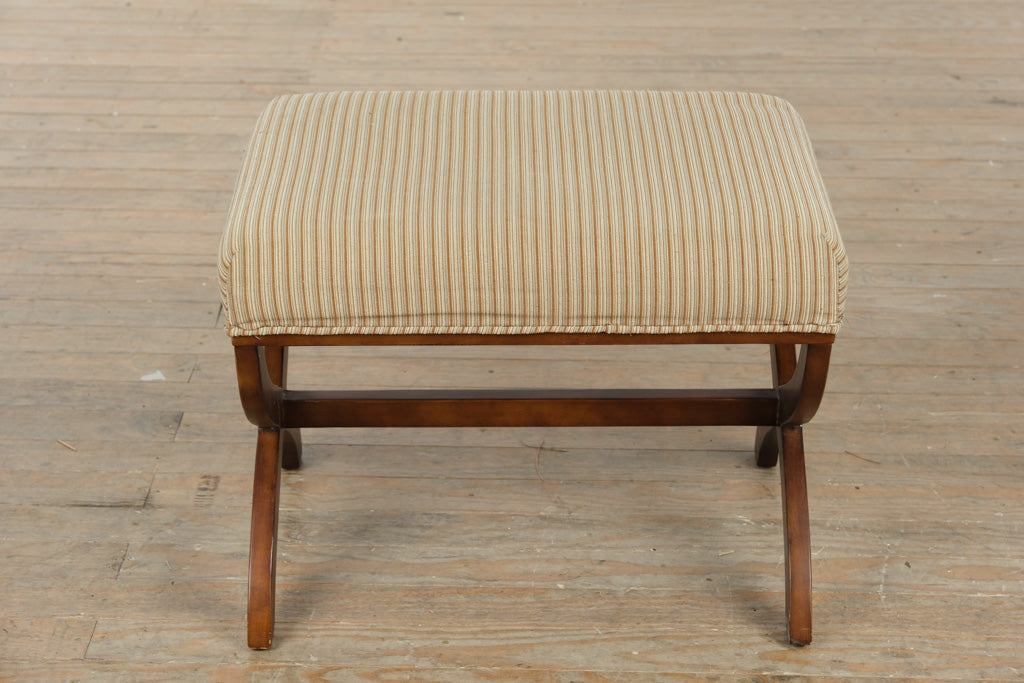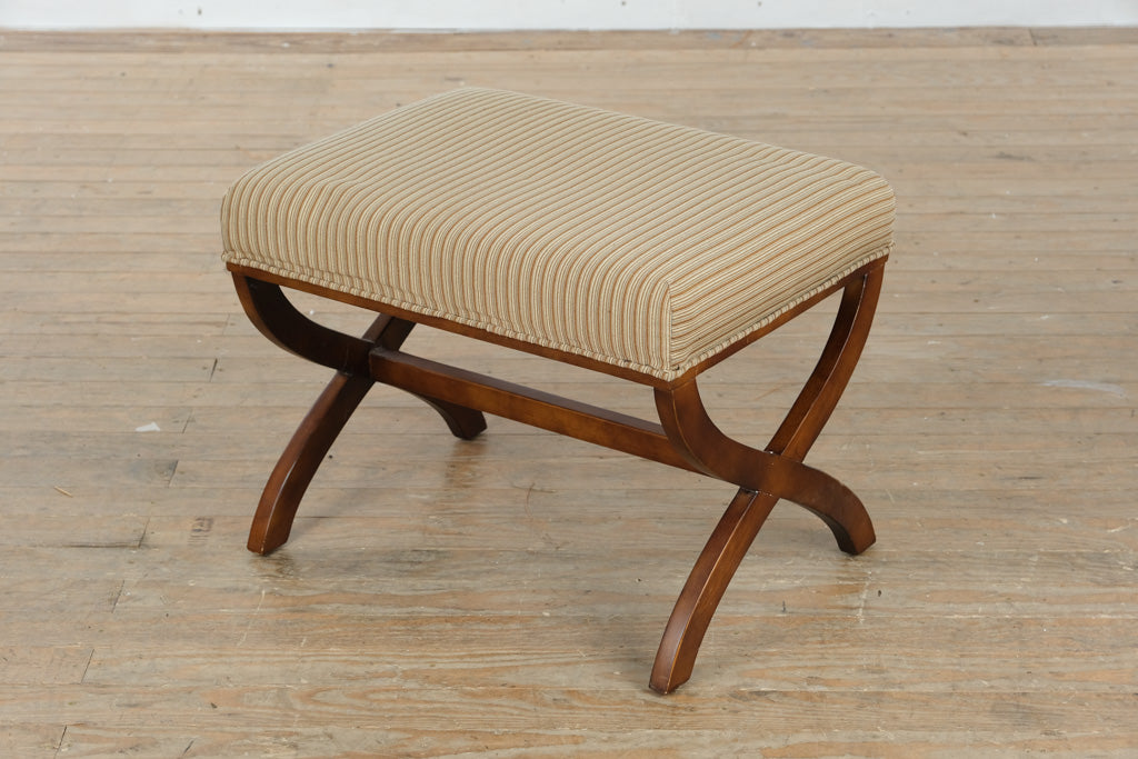 A graceful accent for any dressing area or bedroom, this Vintage Striped Upholstered Vanity Bench combines elegant form with everyday function. The bench features a warm wood frame with gently curved X-shaped legs and a tailored upholstered seat in a neutral striped fabric — creating a timeless silhouette that complements both classic and contemporary interiors.