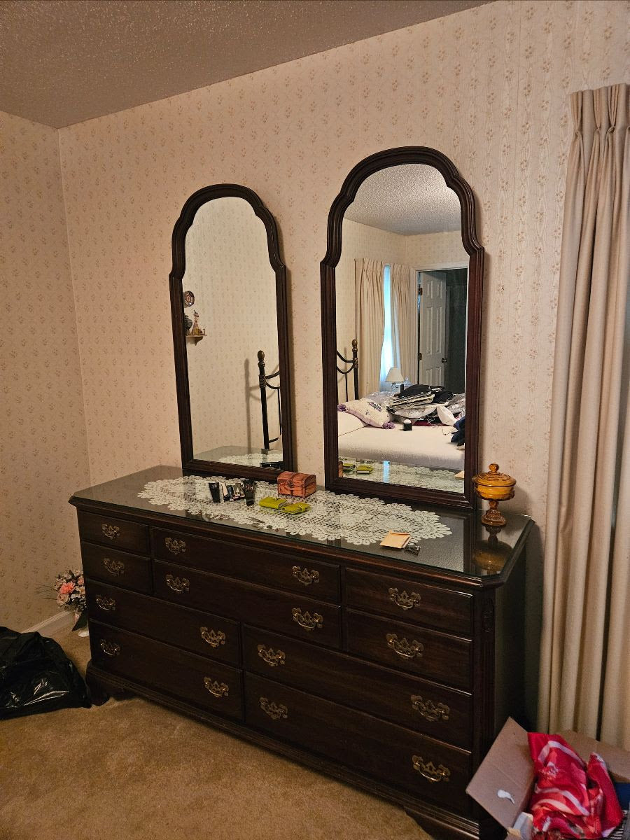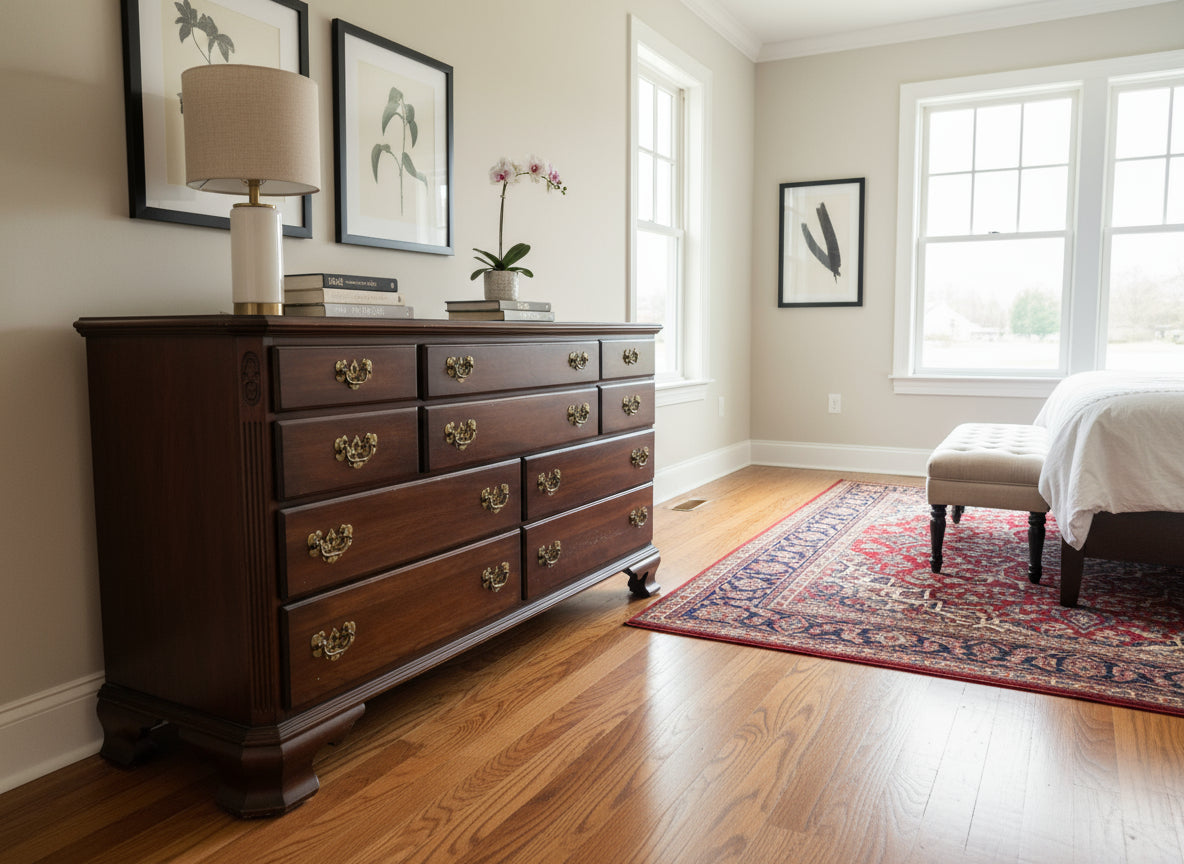 The Georgian Court collection is celebrated for its refined proportions and timeless style. This dresser’s versatile scale makes it ideal for a primary bedroom or guest suite, while its elegant silhouette transitions seamlessly into a dining room or entryway as a sideboard or storage piece. The glass top adds both protection and polish — a thoughtful detail for generations of continued use.