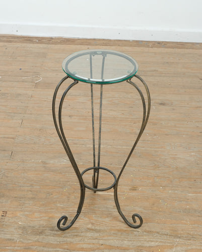 Glass & Wrought Iron Accent Table – Rubbed Pewter Finish, 30” Tall