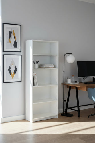 White Five-Shelf Bookcase with Adjustable Shelves - 72" Tall