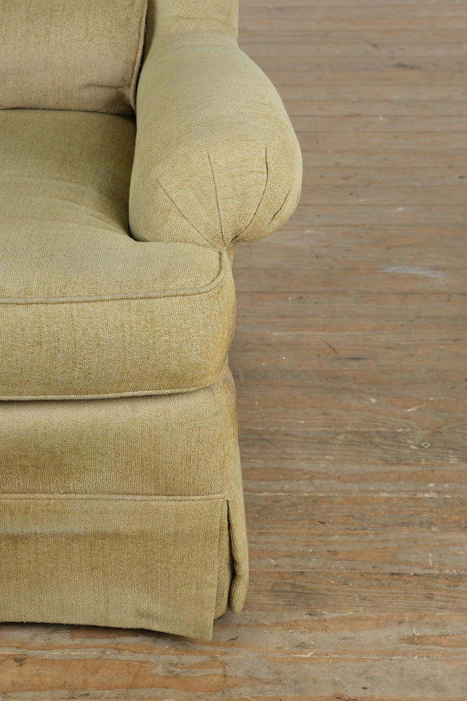 Good overall condition with visible wear from use, including light fabric discoloration and softening of cushions consistent with age.