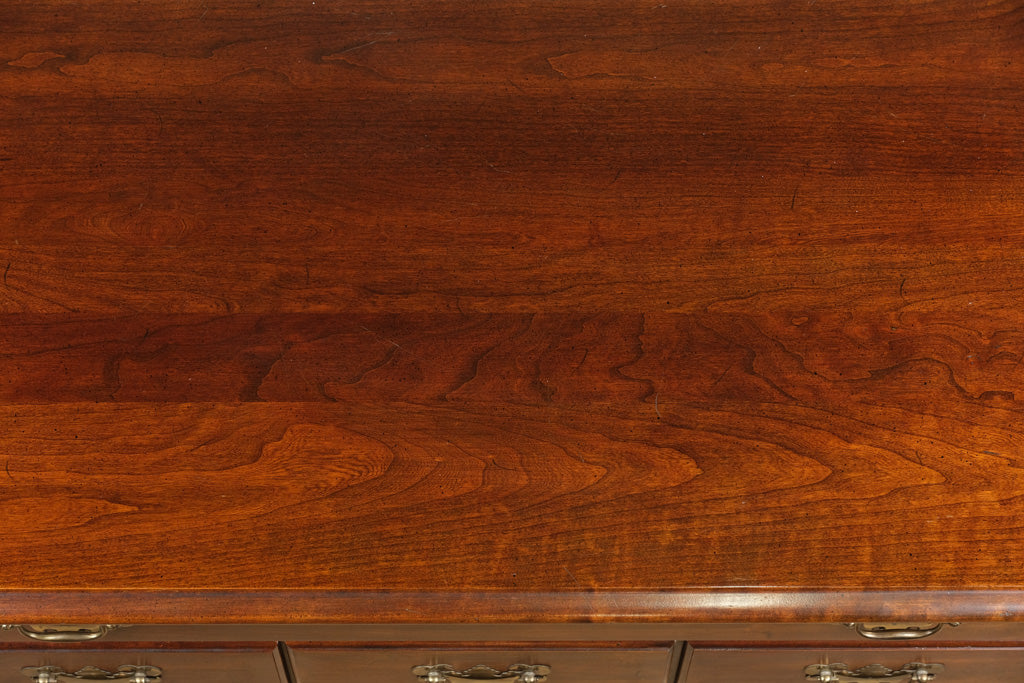 Though unmarked, the design and build quality are strongly reminiscent of Ethan Allen or Pennsylvania House, known for their fine cherry furniture. Its versatile size makes it a perfect fit as a sideboard, entryway table, writing desk, or accent piece throughout the home.