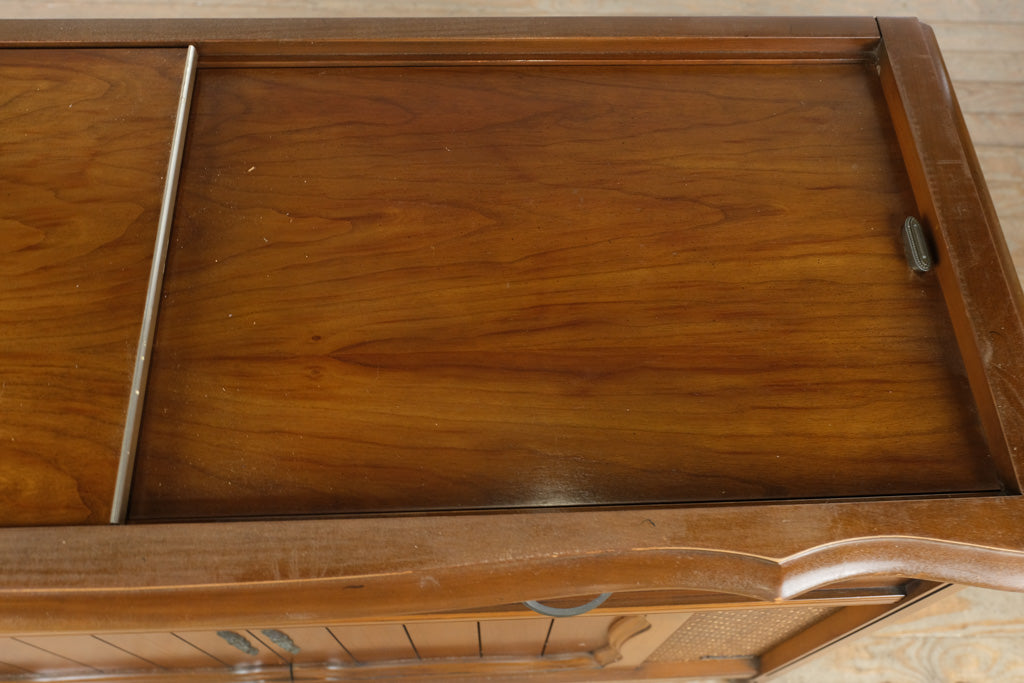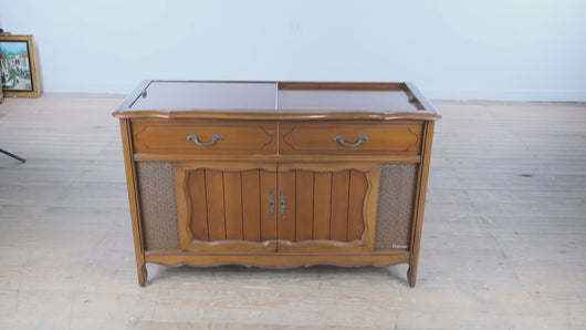 Condition: The cabinet shows finish wear around the top edges, and we were unable to get the unit to power on. Being sold as-is — ideal as a project, parts source, or simply a stylish furniture piece with great character.
