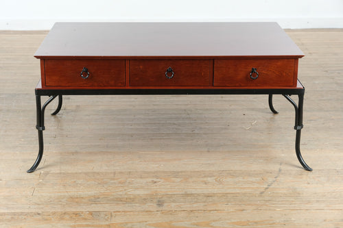 Vintage French-Style Painted Coffee Table – Ornate Carved Base & Patterned Top