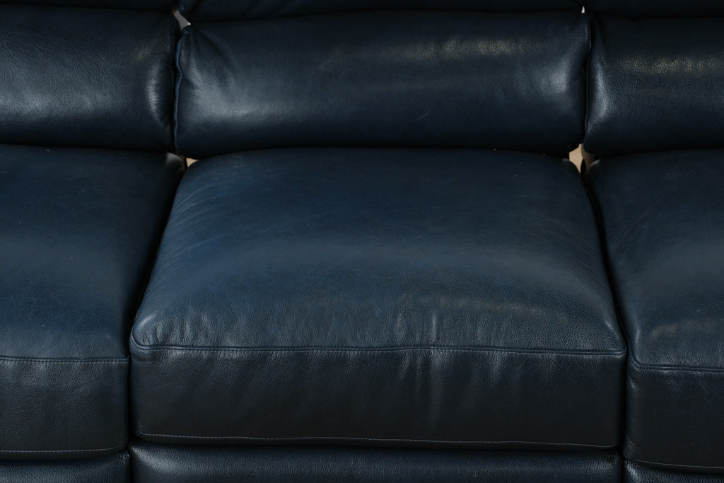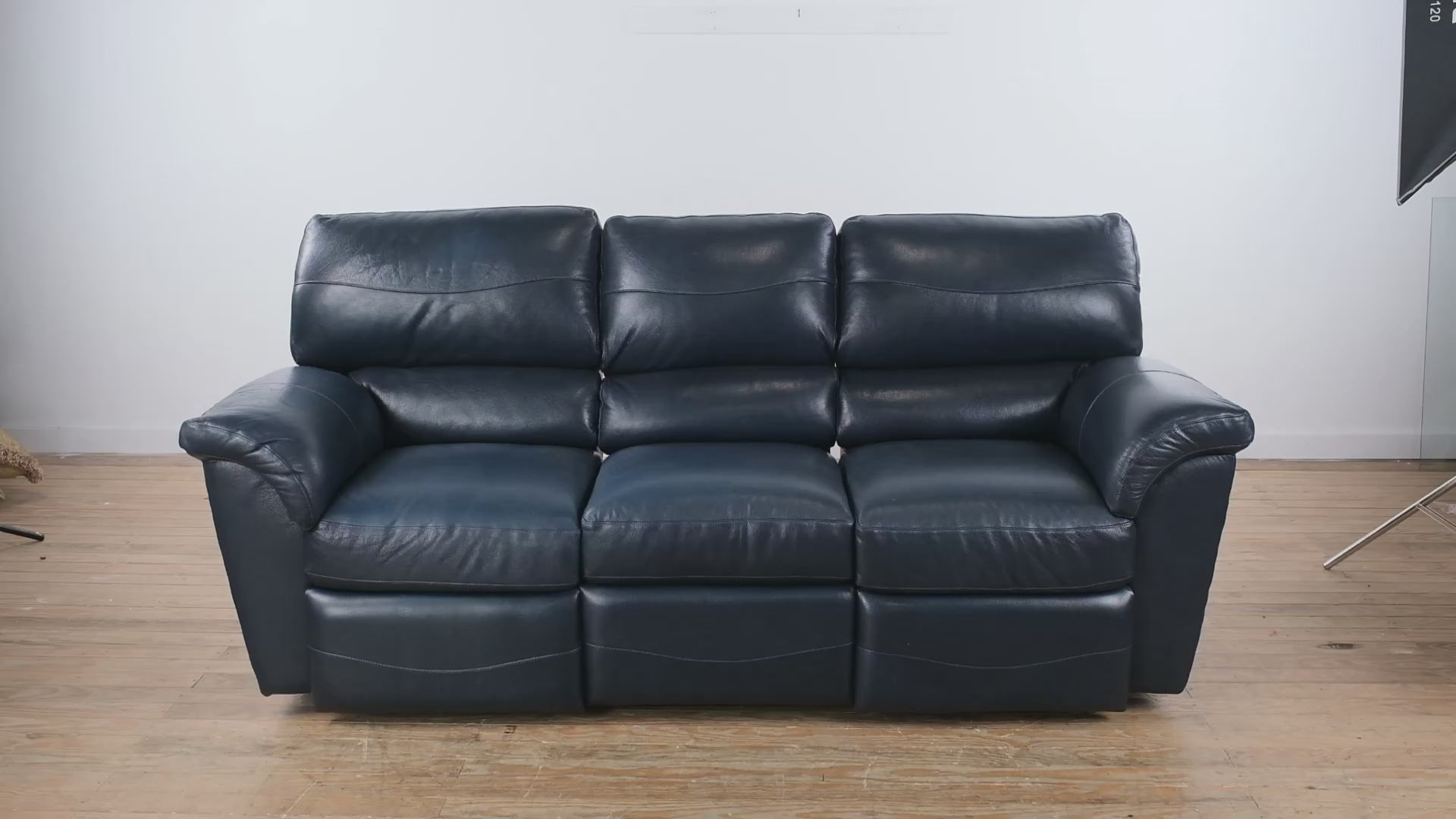 A sleek blend of luxury and relaxation, this navy blue leather La-Z-Boy sofa combines the brand’s signature comfort with modern reclining technology. Designed for both style and function, it offers plush cushioning, soft genuine leather upholstery, and smooth power recline on both outer seats — perfect for everyday lounging or entertaining.