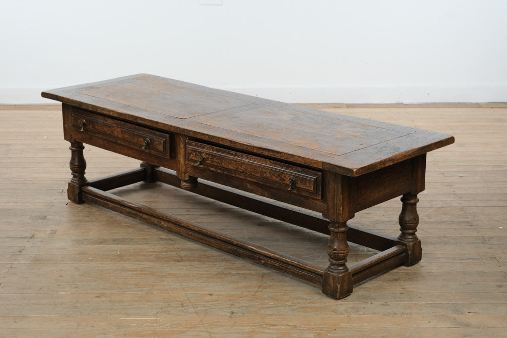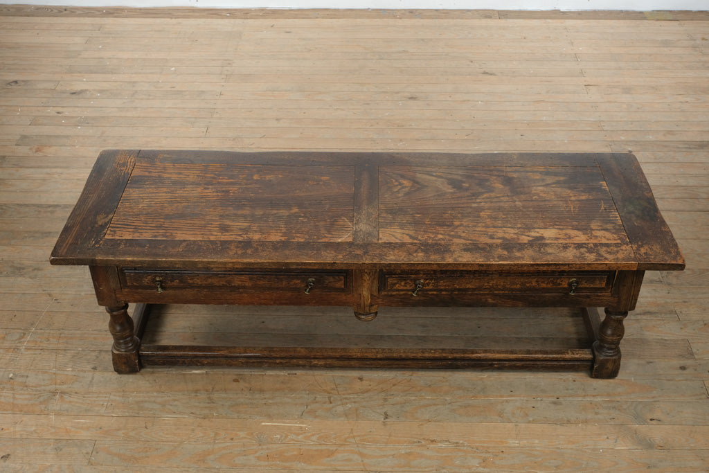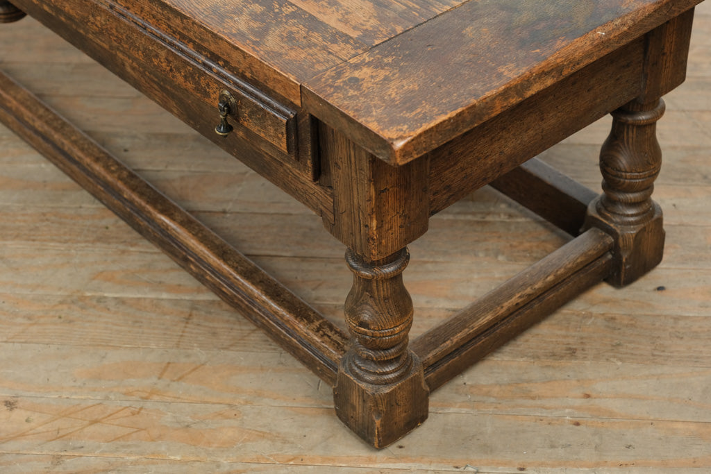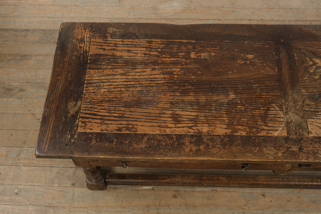 This Globe oak table blends rustic charm with early American craftsmanship, making it ideal for restoration, refinishing, or use in its current patinated state. Perfect for a farmhouse living room, workshop lounge, or studio space, it provides generous surface area and practical storage. Its aged oak character tells a story that complements both traditional and eclectic interiors.