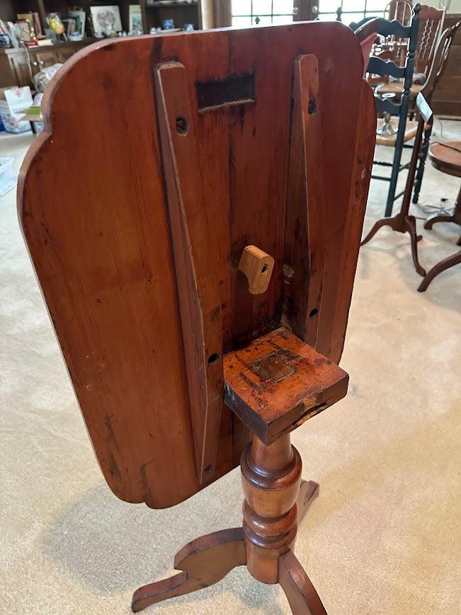 Expertly made from solid wood, this piece showcases fine joinery and craftsmanship throughout. The flip-top mechanism functions smoothly, allowing the tabletop to tilt upright for easy storage or display — a hallmark of 19th-century ingenuity. Its rectangular form sets it apart from the more common round tilt-top tables, making it an uncommon find with both decorative and functional appeal.