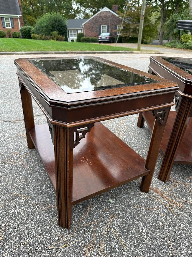 Pair of Lane Chinese Chippendale Glass-Top Side Tables