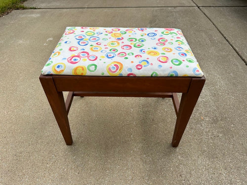 Mid-Century Style Vanity Bench with Colorful Upholstery
