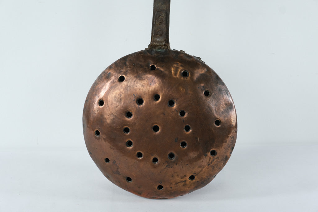 This striking antique copper bed warmer is a wonderful example of traditional European household craftsmanship, likely dating to the 18th–19th century. Used historically to warm linens before retiring for the night, this piece reflects a time when comfort and utility were achieved through skilled handwork and durable materials.