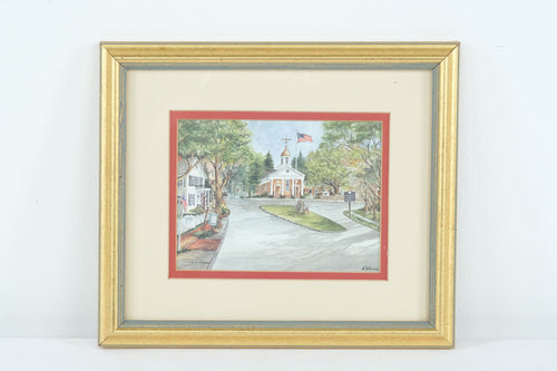 Nancy Robinson “Basking Ridge and the Oak Tree” – Framed Watercolor Art Print, Historic Town Americana Wall Decor