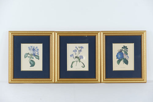 Set of 3 Framed Botanical Prints – Blue Floral Series (Achimenes, Torrenia, Hindsia) – 14.5" x 16.5" Gold Frames
