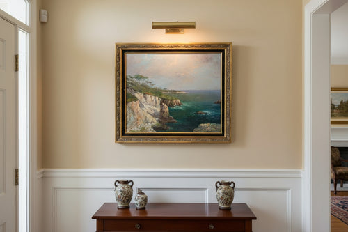 L. Visentin Original Oil on Canvas – Coastal Cliffs Seascape, Signed, Framed