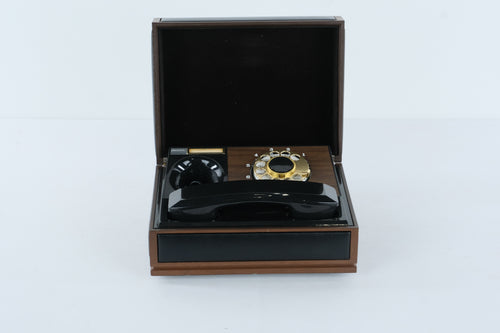 Vintage Discotel Personal Telephone — Hidden Rotary Dial Phone in Woodgrain Box (Model 981B101, 1970s)