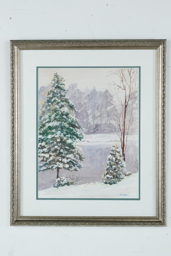 Snowy Barn Scene – Original Oil Painting by A. Faraldi (1991)