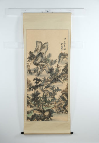 Vintage Chinese Hanging Scroll Landscape Painting – Waterfall & Mountain Scene, 26"x66"