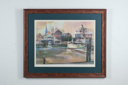 “Morning Mooring” by Ray Ellis – Framed Sailboat Print (32" x 40")