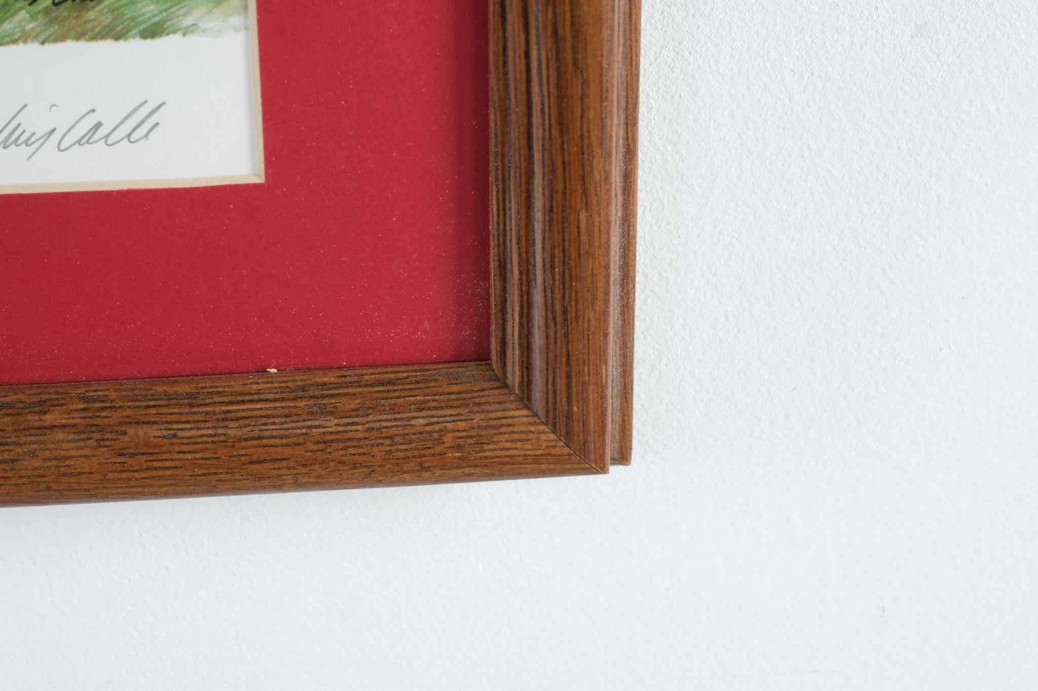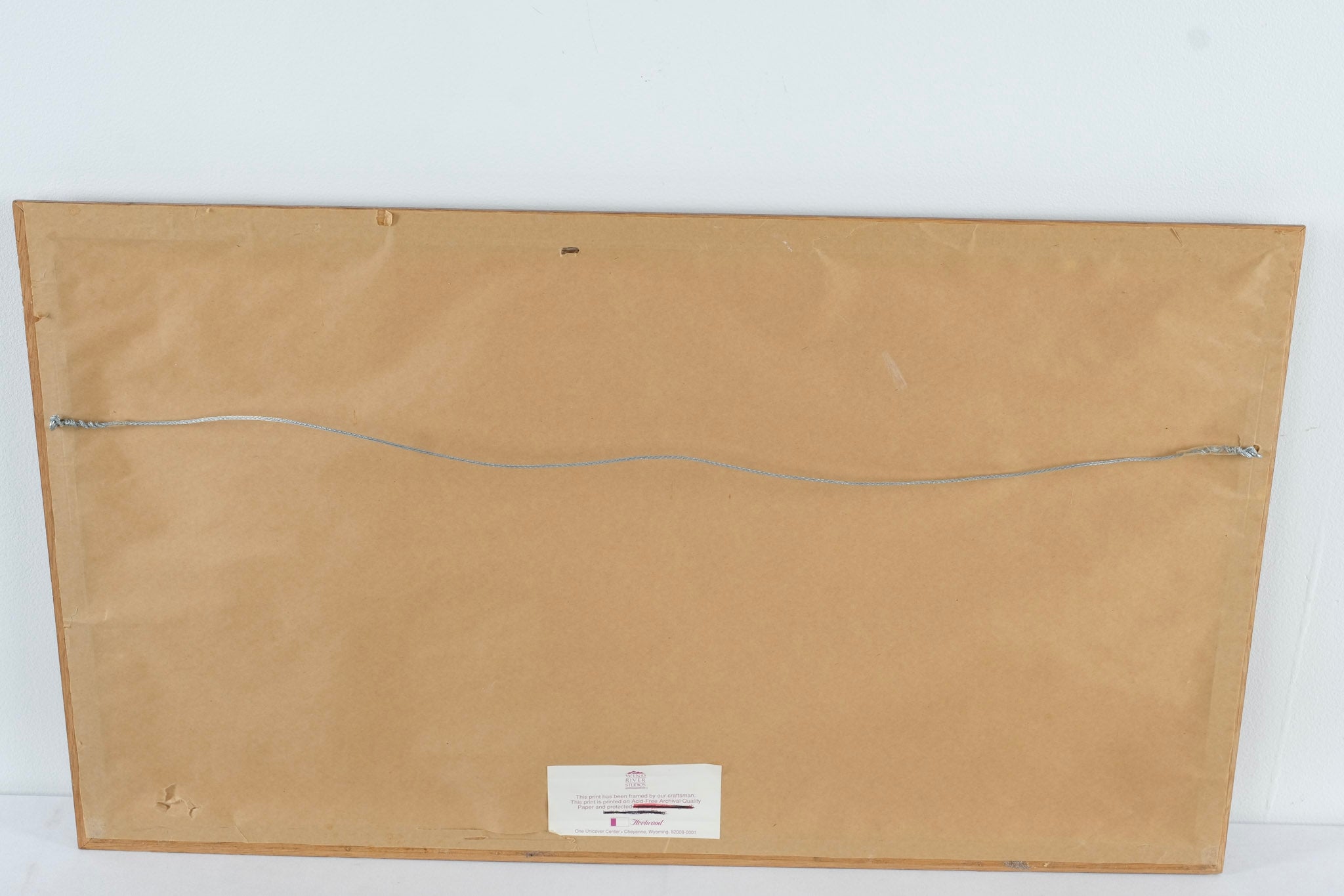 Very Good Condition. Frame and mat show only minor surface wear consistent with age. Prints and stamps remain clean, vivid, and well-preserved behind glass. Backing paper intact with hanging wire secure.