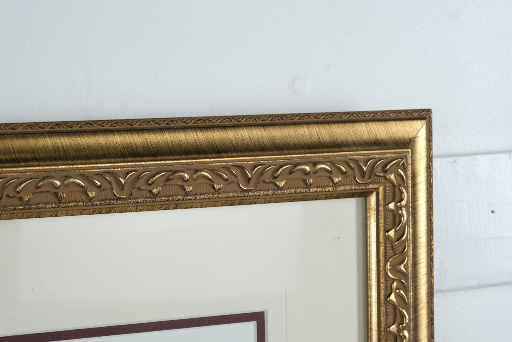 Excellent – vivid color, clean mat and frame, COA included and protected.
