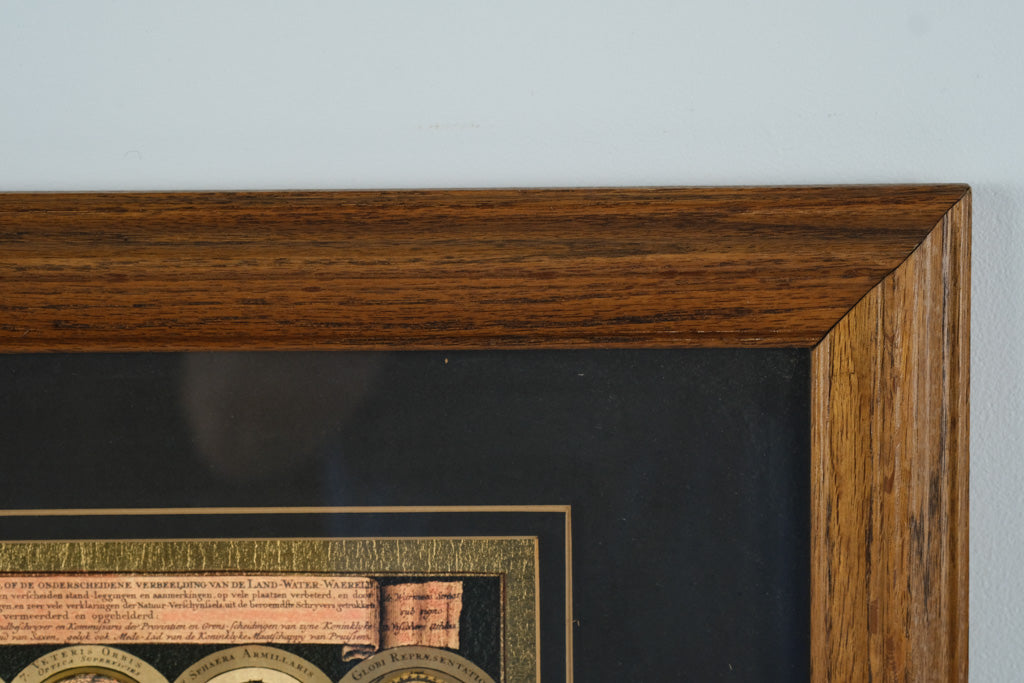 The map is professionally matted in deep charcoal tones with gold accent trim and housed in a warm medium-tone wood frame.