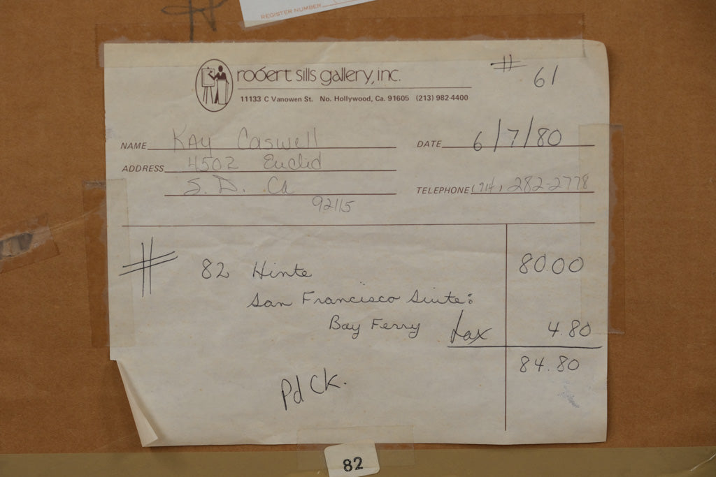 Capture the spirit of San Francisco’s working waterfront with this signed and numbered limited-edition serigraph by Gary Hinte, titled “San Francisco Suite: Bay Ferry.” The piece depicts a stately ferryboat moored in the harbor, with Hinte’s expressive, sketch-like strokes conveying the dynamic energy of the bay. The layered pastel tones and loose, modernist detailing give the work both architectural precision and painterly freedom — a hallmark of Hinte’s style.