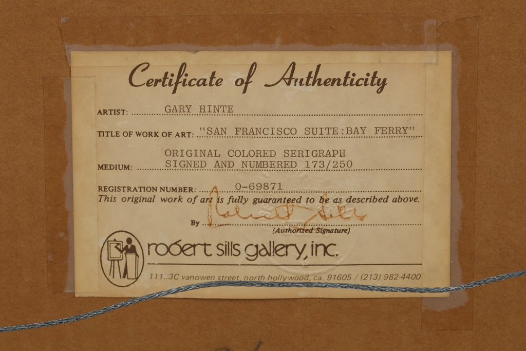 Gary Hinte “San Francisco Suite: Bay Ferry” Signed & Numbered Serigraph – Limited Edition