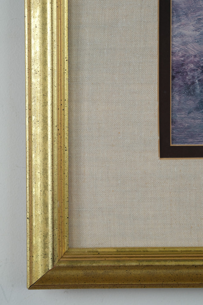 Professionally matted with a linen surround and housed in a gold-toned frame with subtle vintage wear. A commanding piece for traditional interiors, studies, or equestrian collections.