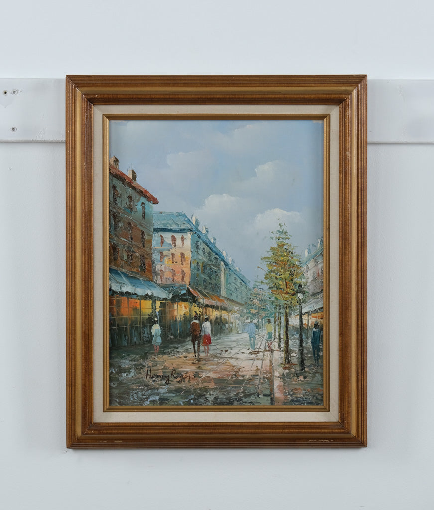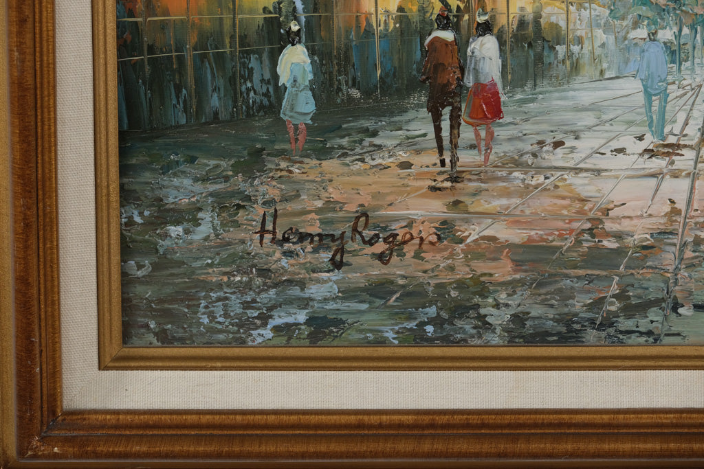 Henry Rogers Original Oil on Canvas – Parisian Street Scene, Signed (16.5" x 20.5")