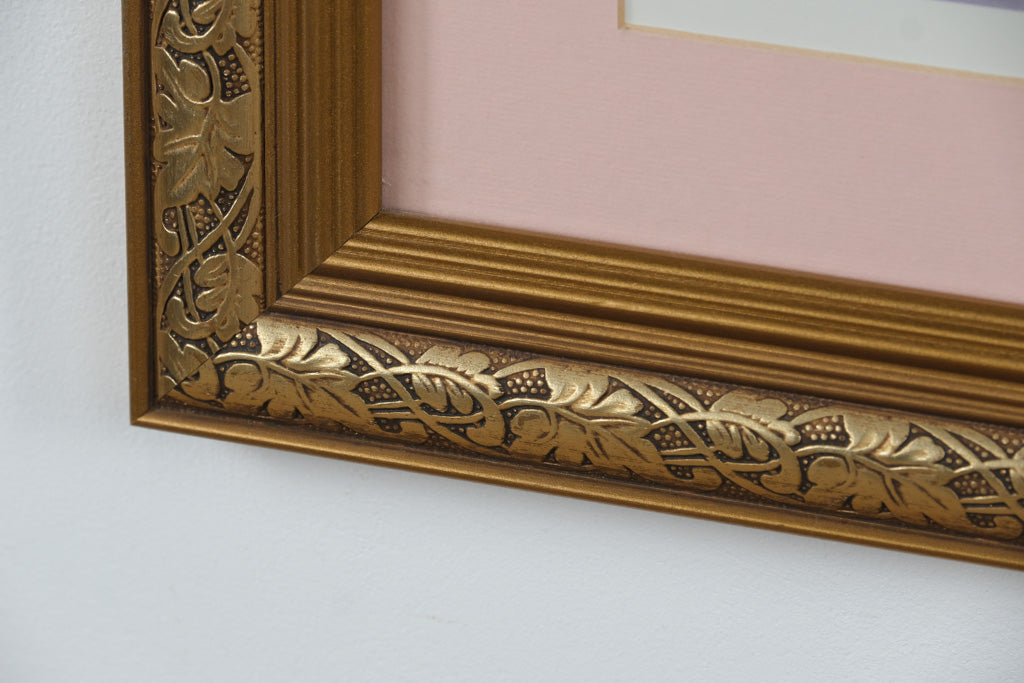 Excellent – Artwork and mat are clean with vivid color preservation. Frame shows light, age-appropriate wear with no structural issues.