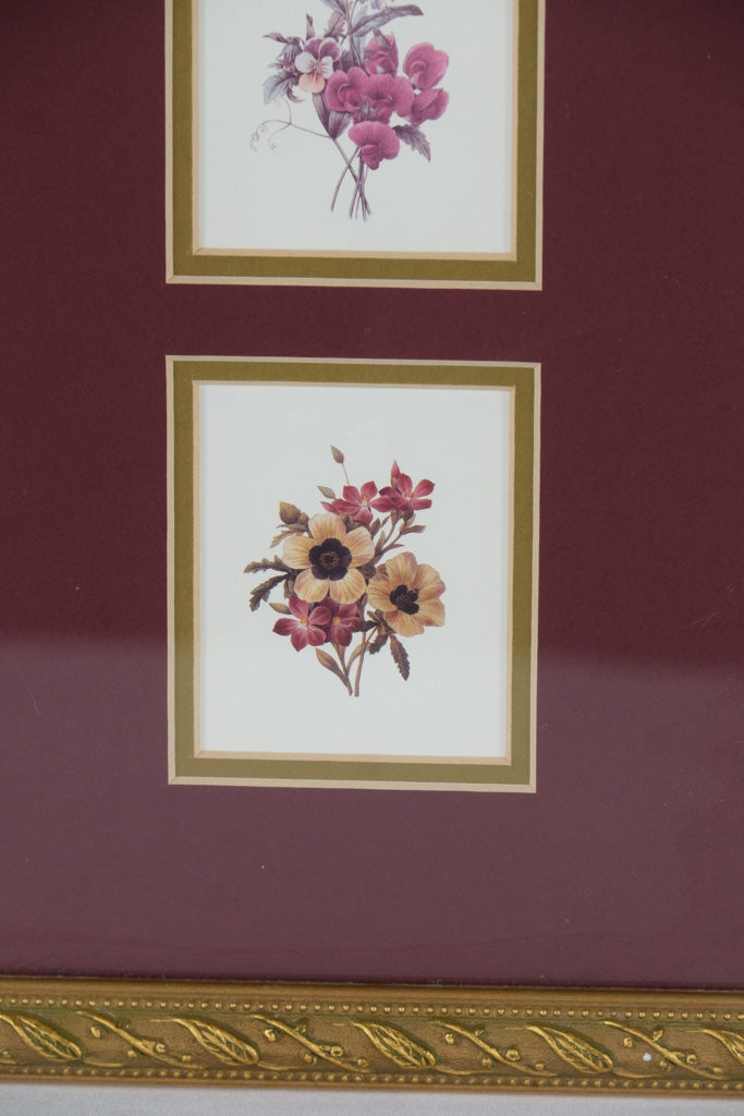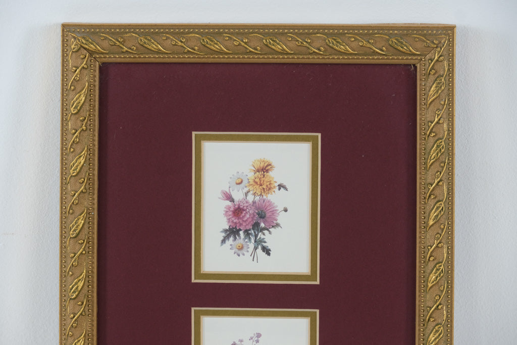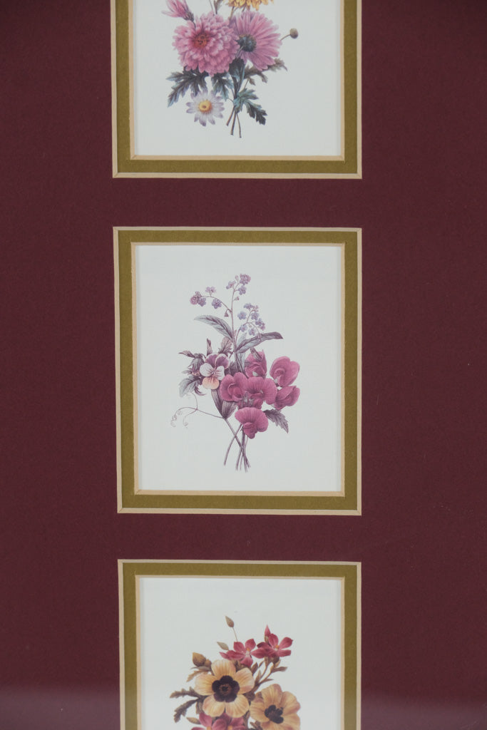 Modern Triple Floral Print Wall Art – 8.5" x 15.25" Gold Frame with Burgundy Mat
