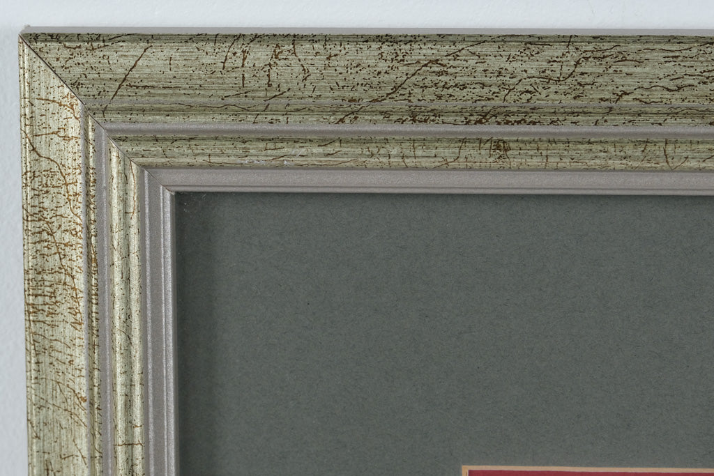 Excellent – frame, glass, and artwork are clean and intact with no visible damage.