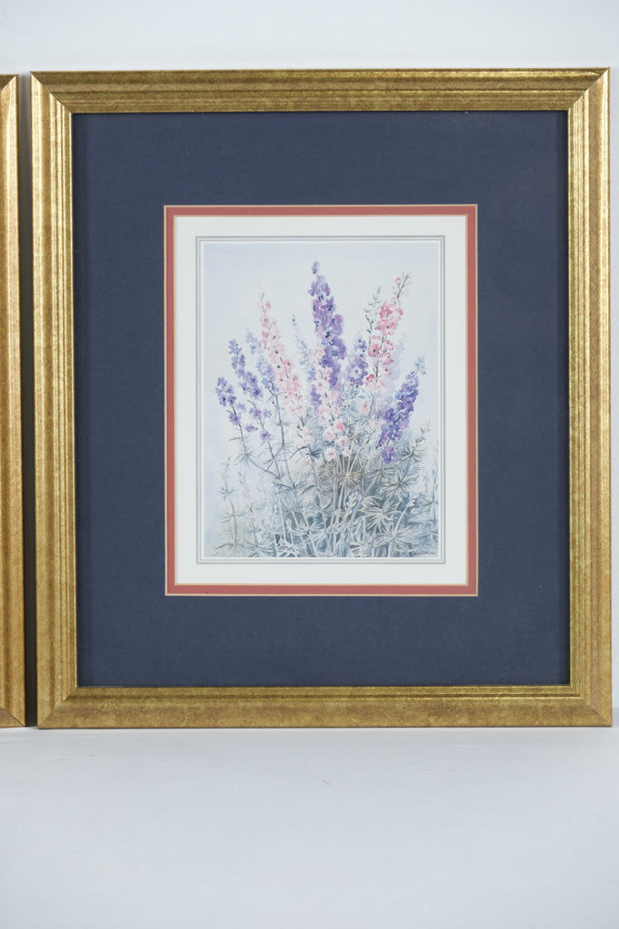 • Load image into Gallery viewer, Set of 2 Framed Floral Prints by B.M. Cheesman – “Irises” & “Salvia” – 15" x 17" Gold Frame Wall Art