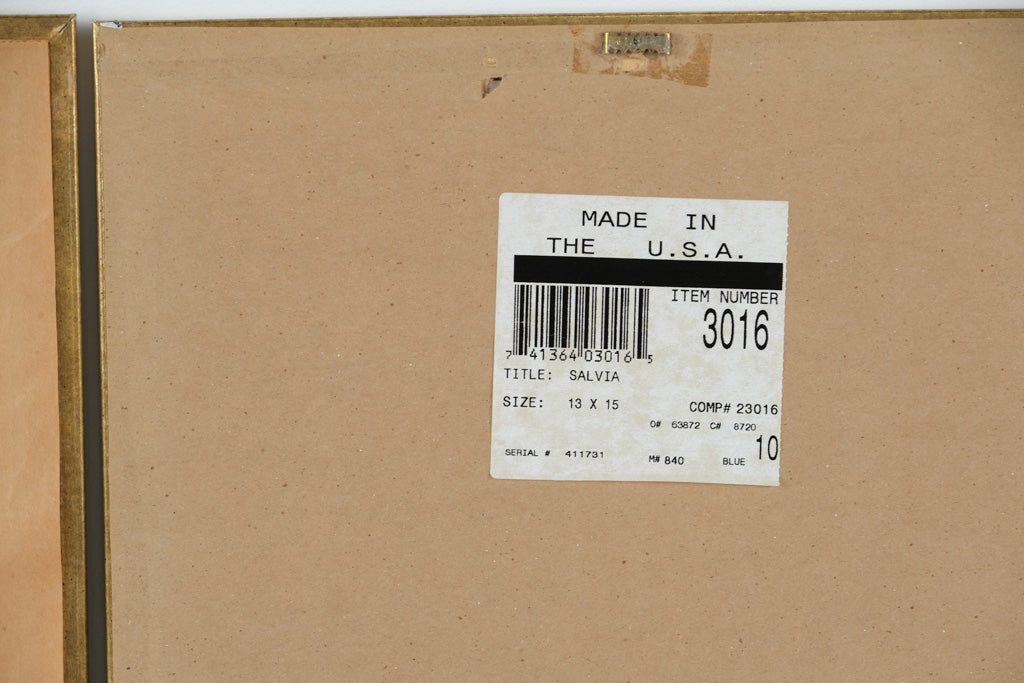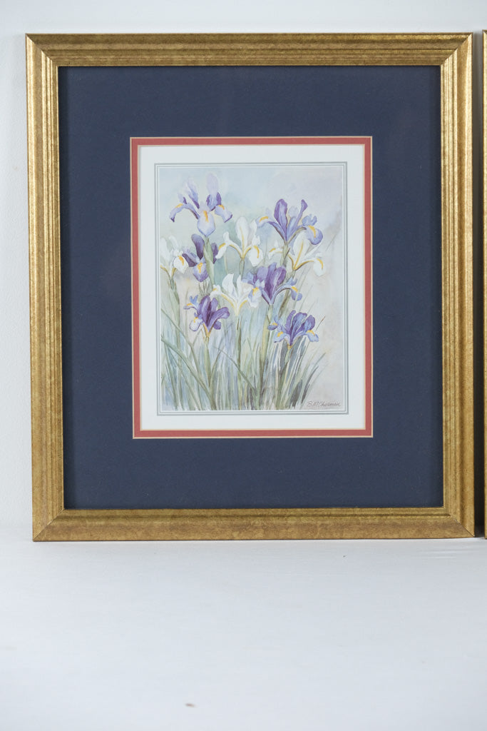 Set of 2 Framed Floral Prints by B.M. Cheesman – “Irises” & “Salvia” – 15" x 17" Gold Frame Wall Art