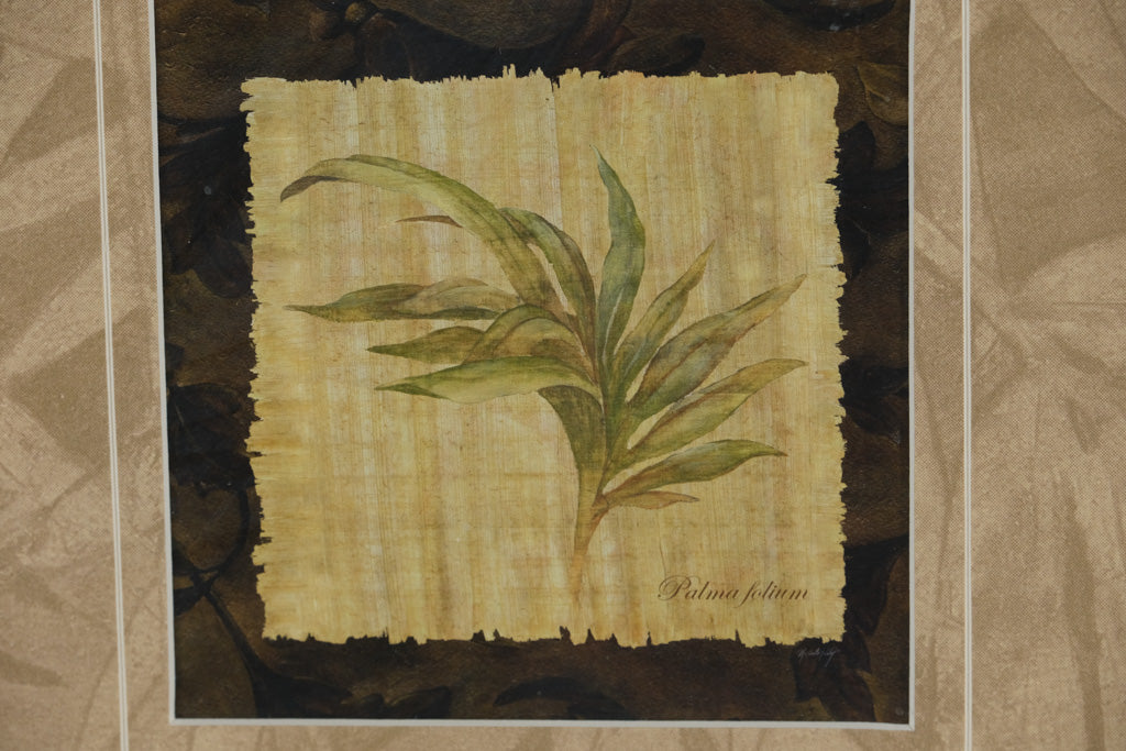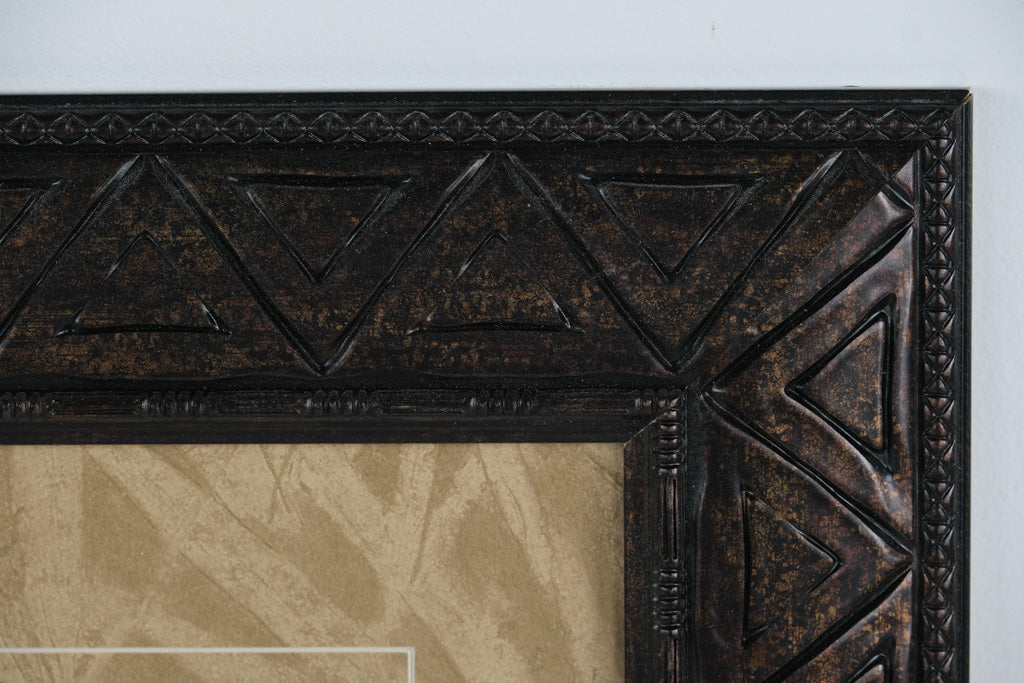Add a touch of warm, tropical sophistication to your décor with this beautiful set of two framed palm prints — “Palma Folium” and “Pinang Raja.” Each piece features a softly aged botanical illustration rendered on a parchment-style background, bordered with rich, earth-toned mats that enhance their natural appeal. The bold, carved geometric frames in a dark bronze-brown finish lend these artworks a refined, global-inspired character. Perfect for coastal, tropical, or classic interiors, this pair brings understated elegance to any space — from a living room to a sunroom or guest retreat.