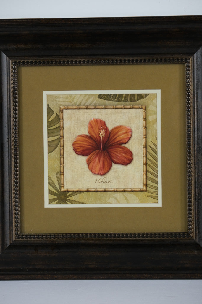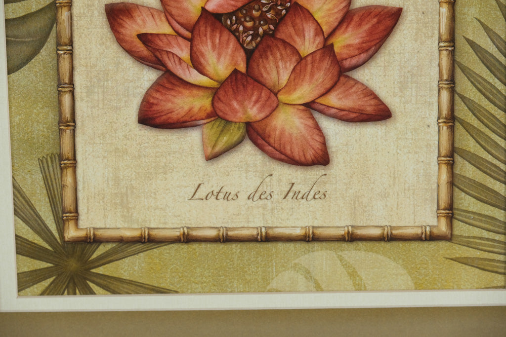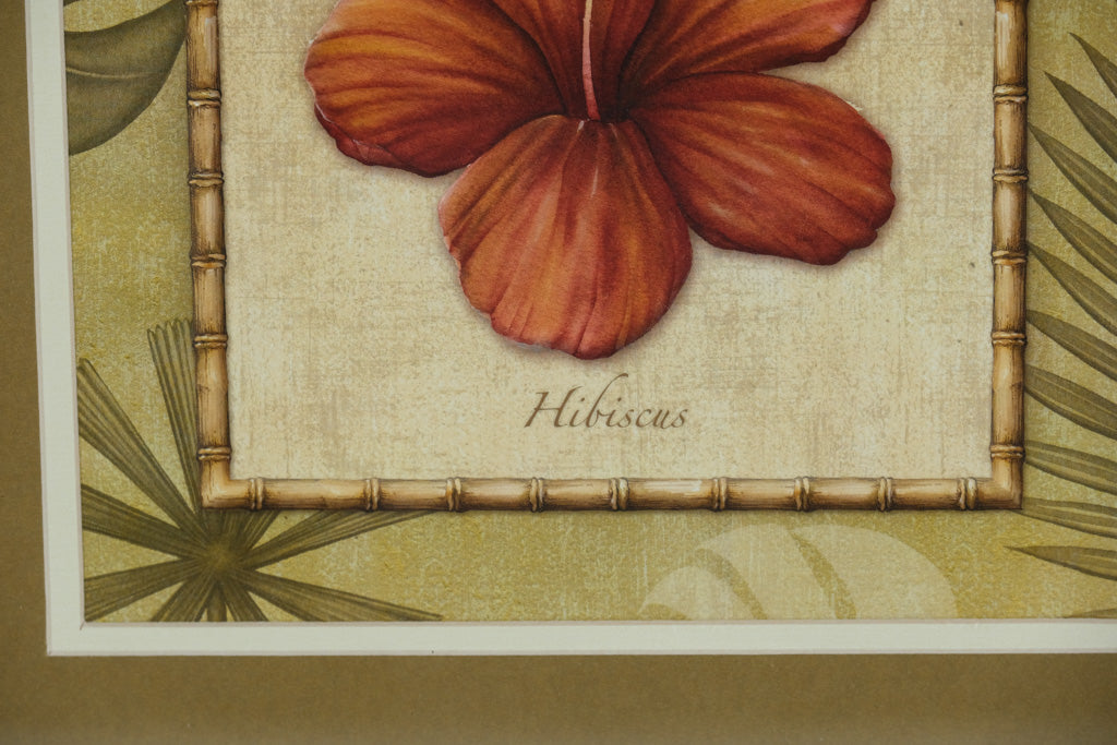 Set of 2 framed tropical botanical prints: Hibiscus & Lotus des Indes
